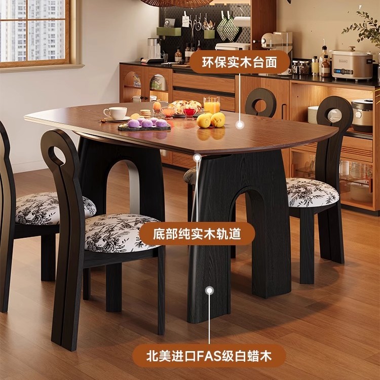 Whale Island Meja Makan Kayu Solid Kenari Hitam Restoran Meja Makan Rumah Tangga Meja Meja Kerja Kayu Asli Modern Sederhana