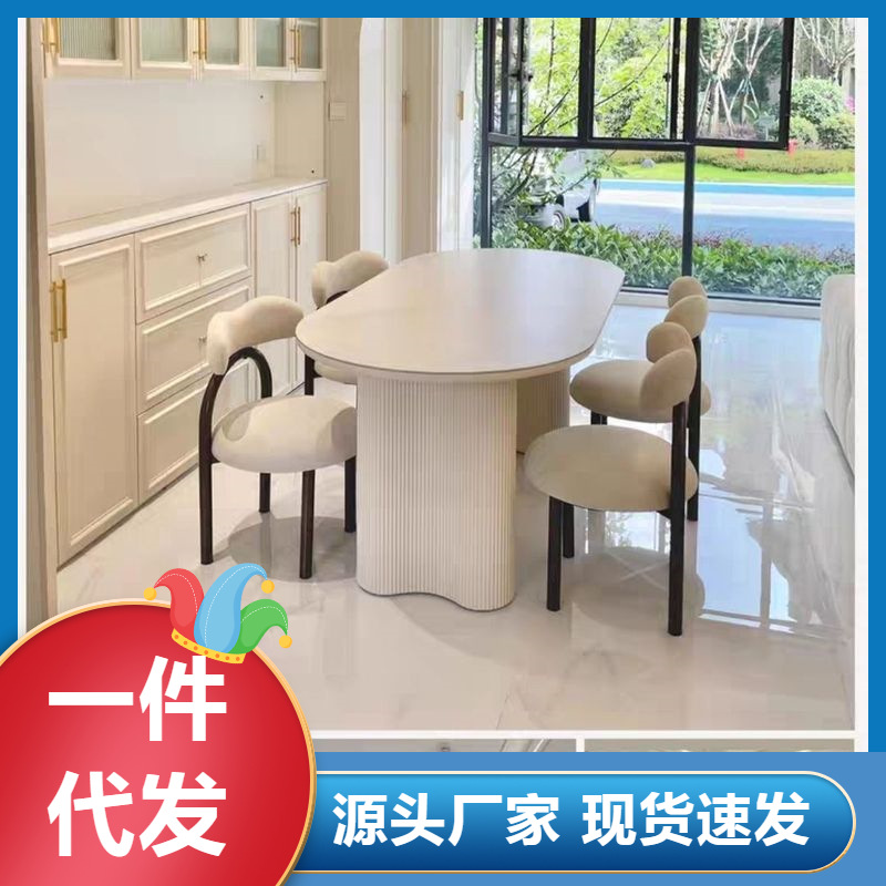 Kombinasi Meja Makan Oval Rumah Tangga Ukuran Kecil Warna Putih Murni Warna Krim Papan Bawah Papan Batu