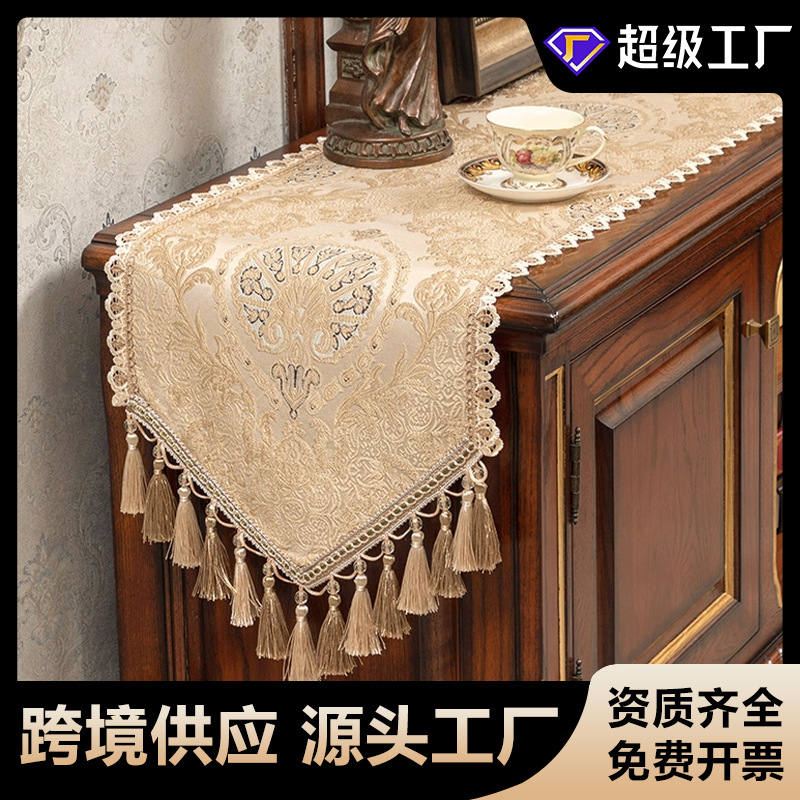 Taplak meja panjang mewah bergaya Eropa, taplak meja dekorasi mewah kelas atas Amerika, taplak meja kopi renda, taplak meja panjang