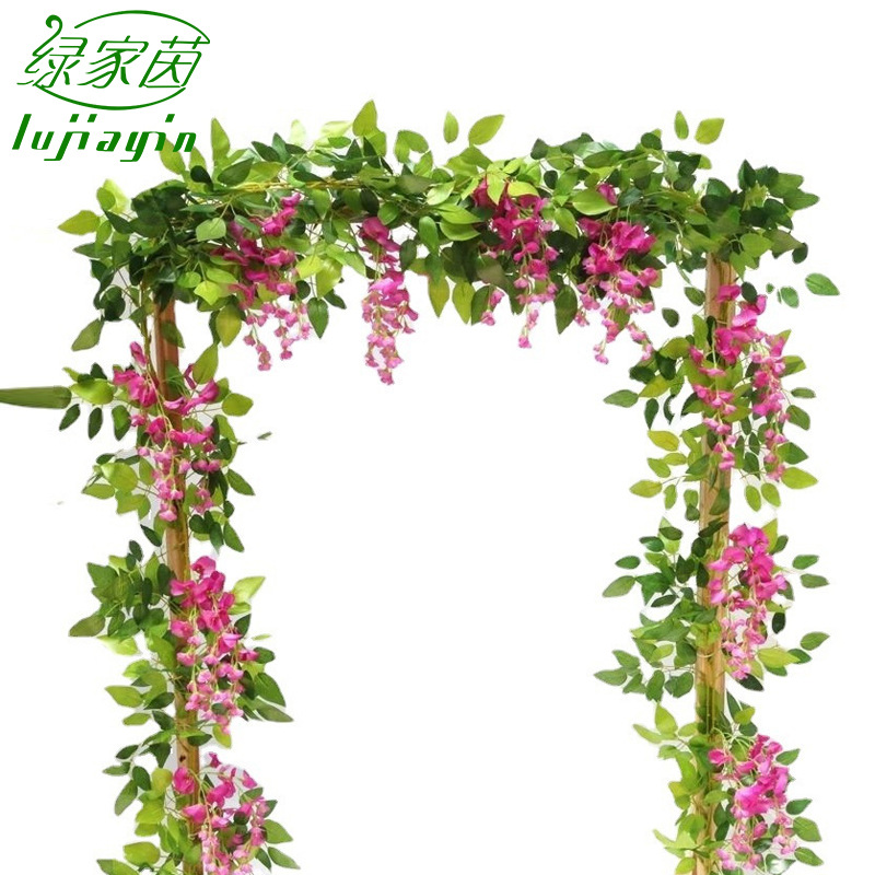 Grosir bunga wisteria buatan bunga buatan rotan dekorasi bunga lilitan langit-langit penutup tabung AC tanaman rambat bunga palsu plastik