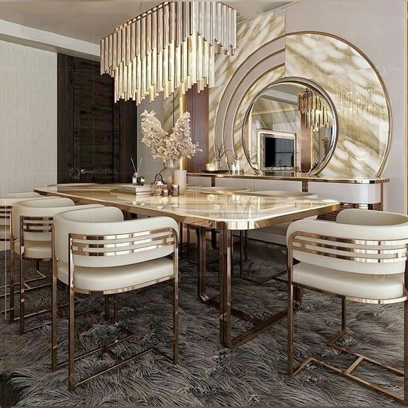 Meja Makan Terang Gaya Italia Meja Makan Terang Gaya Italia Mewah Modern Ringan Kombinasi Kursi Meja Makan Rumah Tangga Kecil