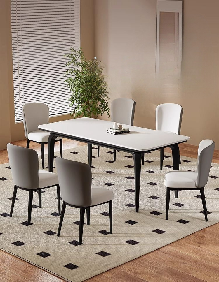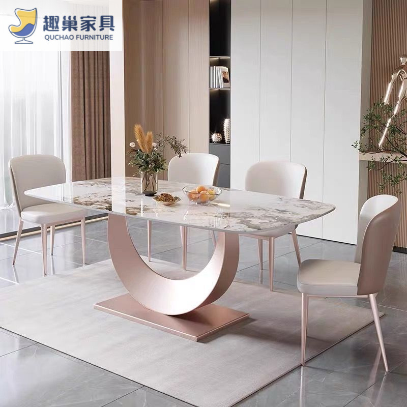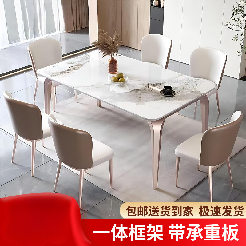 Meja Makan Persegi Panjang Gaya Italia Sederhana Modern Tipe Meja Kecil Rumah Tangga Model Baru Meja Makan Papan Batu Kombinasi Meja Makan Kursi