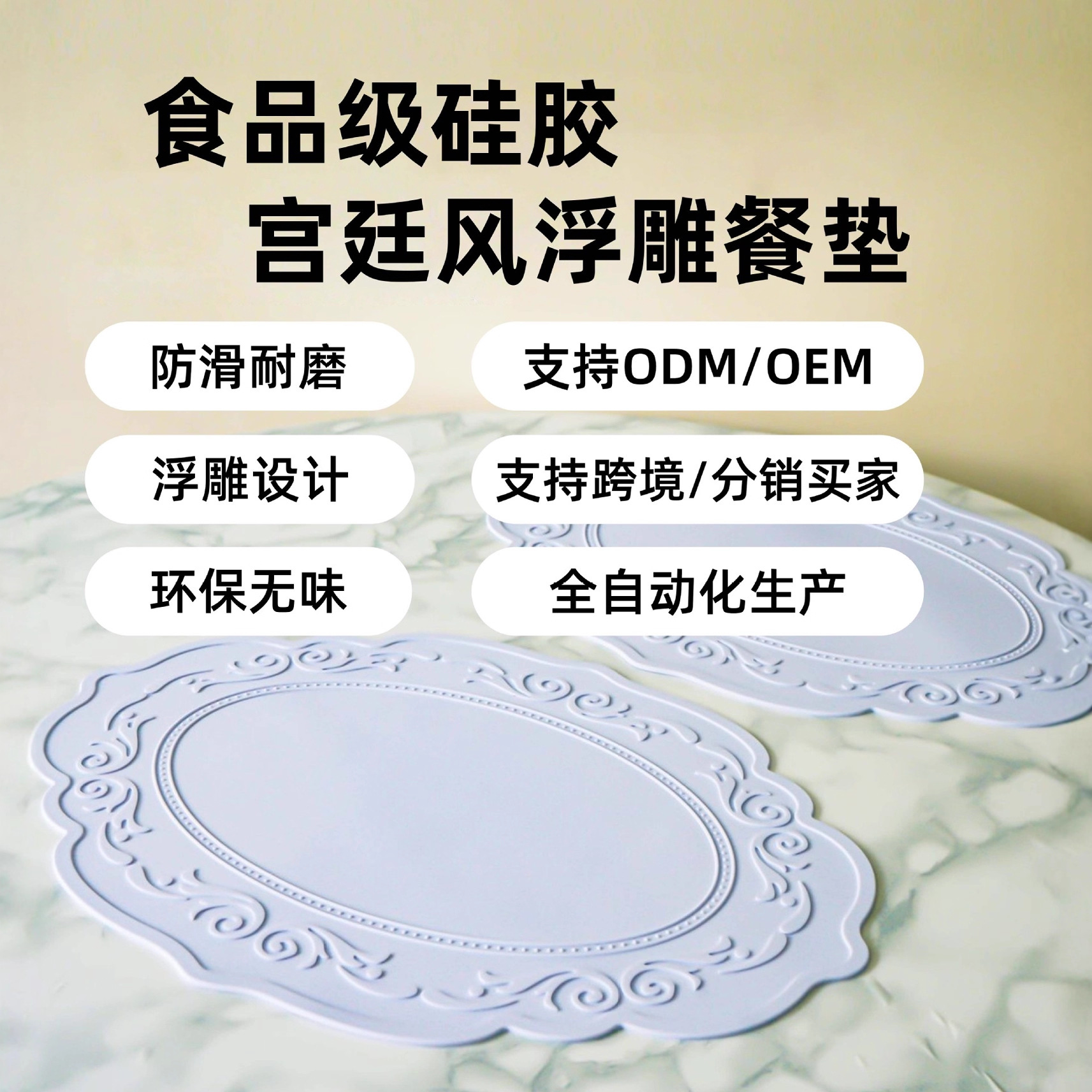 Grosir tatakan renda timbul oval gaya Korea, alas meja silikon anti-selip anti-keriput tikar isolasi mudah pembersihan