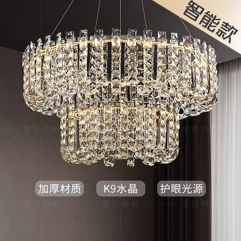 Lampu Ruang Tamu Starter Lampu Kristal Lampu Gantung Kelas Atas Prancis Mewah Ringan Lampu Ruang Makan Ekstra Tebal Mata Lampu Kamar Pintar Kontrol Suara