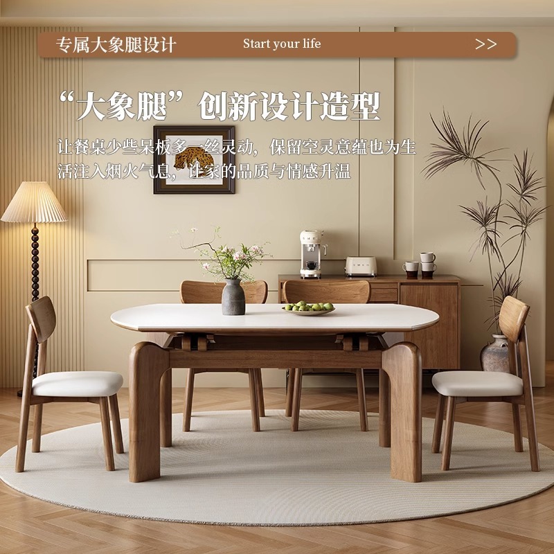 Meja Makan Papan Batu Kayu Solid Eropa Utara Meja Makan Kaki Gajah Meja Makan Rumah Tangga Tipe Kecil Teleskopik Lipat Kayu Bulat Persegi Dua Penggunaan