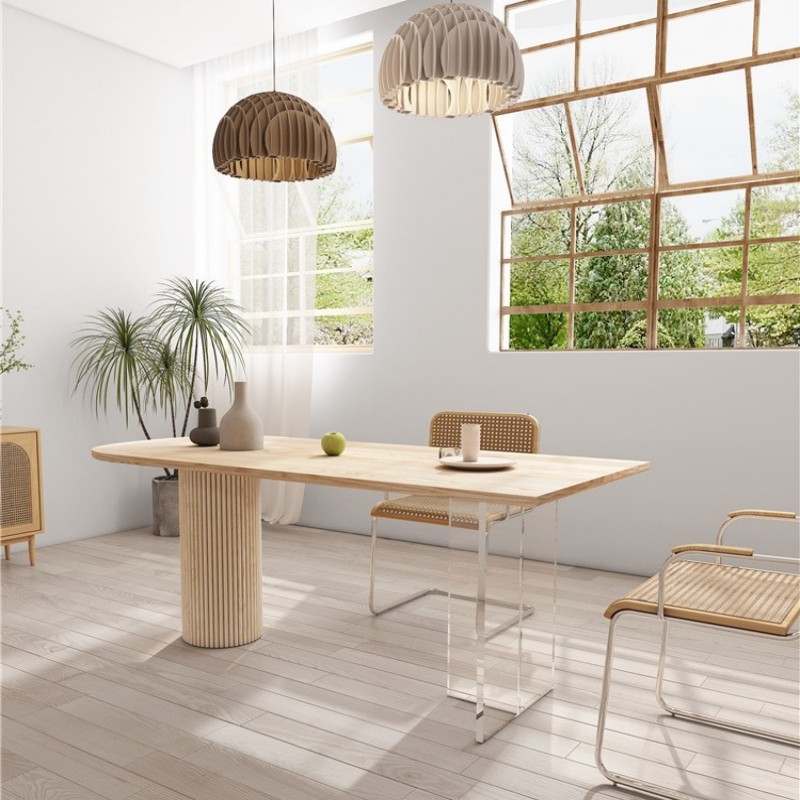 Meja Makan Nordik tengah pulau bundar kayu solid meja makan kecil apartemen rumah tangga setengah lingkaran akrilik kayu meja makan