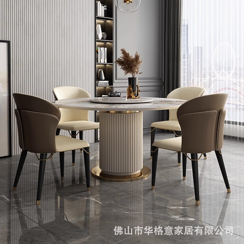 Meja Makan Batu Mewah Ringan Hotel High-end Meja Bundar Besar Gaya Italia Bentuk Bulat Gaya Eropa Utara Modern Sederhana Meja Makan Rumah Tangga Apartemen Kecil