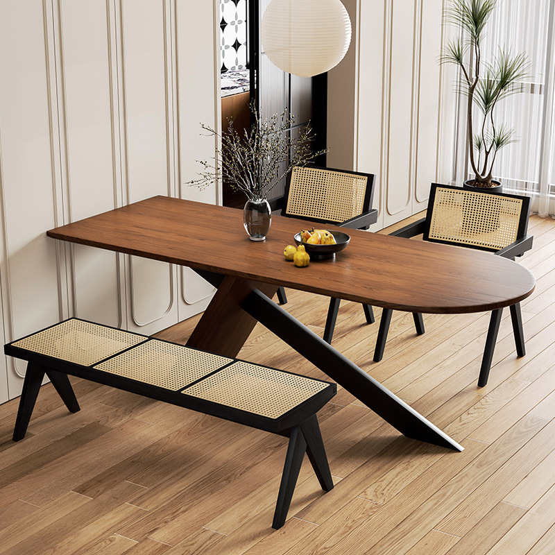 Meja Makan Persegi Panjang Meja Makan Kayu Solid Meja Makan Persegi Sederhana Rumah Tangga Ukuran Kecil Kombinasi Meja Makan dan Kursi Makan Warna Kenari