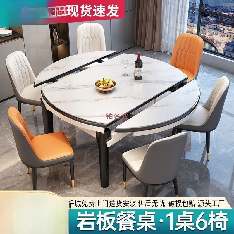 Meja Makan Papan Batu Kombinasi Kursi Makan Meja Makan Sederhana Rumah Tangga Kayu Solid Meja Makan Meja Bundar Lipat Dapat Dipespatkan