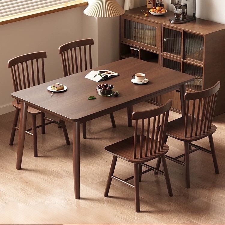 Meja Makan Kayu Solid Eropa Utara Meja Makan Persegi Panjang Sederhana Modern Warna Kenari Kombinasi Meja Kursi Kayu Karet Tipe Kecil