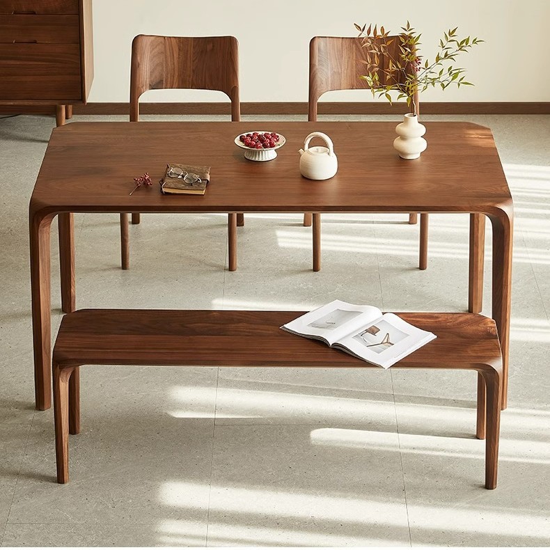 Meja Makan Mochizuki Persegi Panjang Kayu Walnut Hitam Amerika Utara Meja Makan Unit Kecil Sederhana Restoran Rumah Tangga Meja Tanggam Kayu Solid