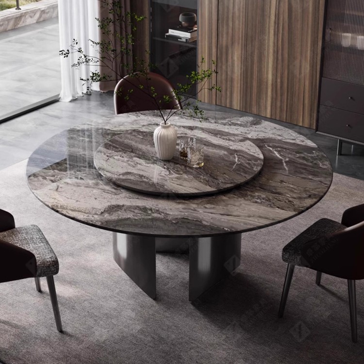 Gaya Italia Meja Makan Batu Mewah Mewah Mewah Mewah Mewah Ringan Mewah Kelas Atas Villa Meja Makan Marmer Alami Meja Makan dengan Meja Berputar