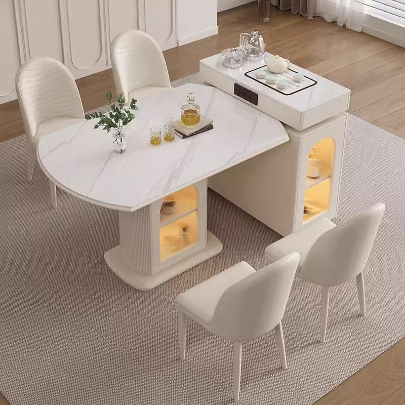 Meja Makan Papan Batu Gaya Krim Meja Meja Meja Meja Meja Kecil Rumah Tangga Teleskopik Tipe Persegi Dua Tipe Persegi Meja Makan Pulau Sederhana Modern