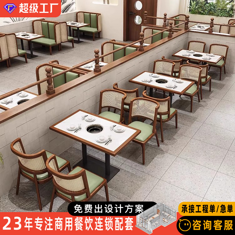 Restoran Bertema Restoran Kombinasi Meja dan Kursi Kayu Solid Restoran Asia Tenggara Restoran Barat Restoran Hot Pot Restoran Sofa Kursi Kartu Rotan