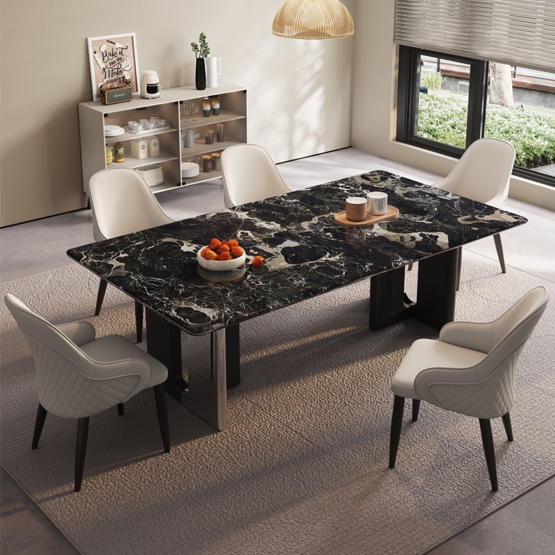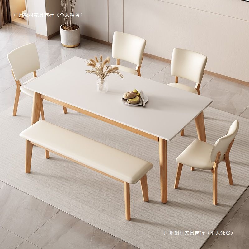 Meja Makan Papan Batu Persegi Panjang Meja Makan Modern Kayu Solid Krim Rumah Tangga Meja Makan Kursi Kombinasi Unit Kecil Eropa Utara