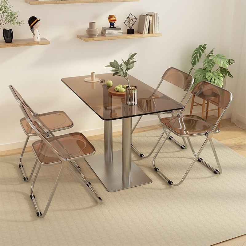 Kombinasi Meja Makan dan Kursi Gaya INS Selebriti Internet Meja Pribadi untuk Foto Kaca Tempered Gaya Industri Suriah Sederhana Rumah Tangga