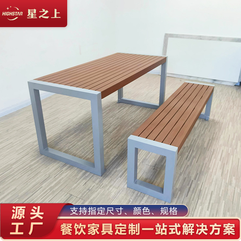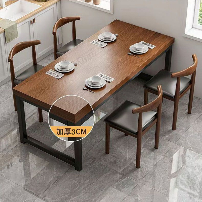 Papan Batu Kayu Solid Papan Meja Makan Komersial Toko Makanan Kecil Toko Mie Teh Susu Sederhana Perpaduan Meja Makan dan Kursi Restoran