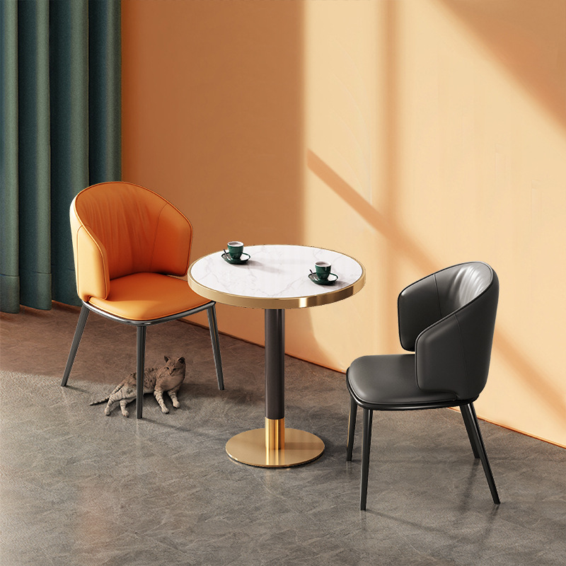 Batu Marmer Stainless Steel Meja Makan dan Kursi Meja Persegi Komersial Hotel Negosiasi Meja Bundar Kecil Restoran Teh Susu