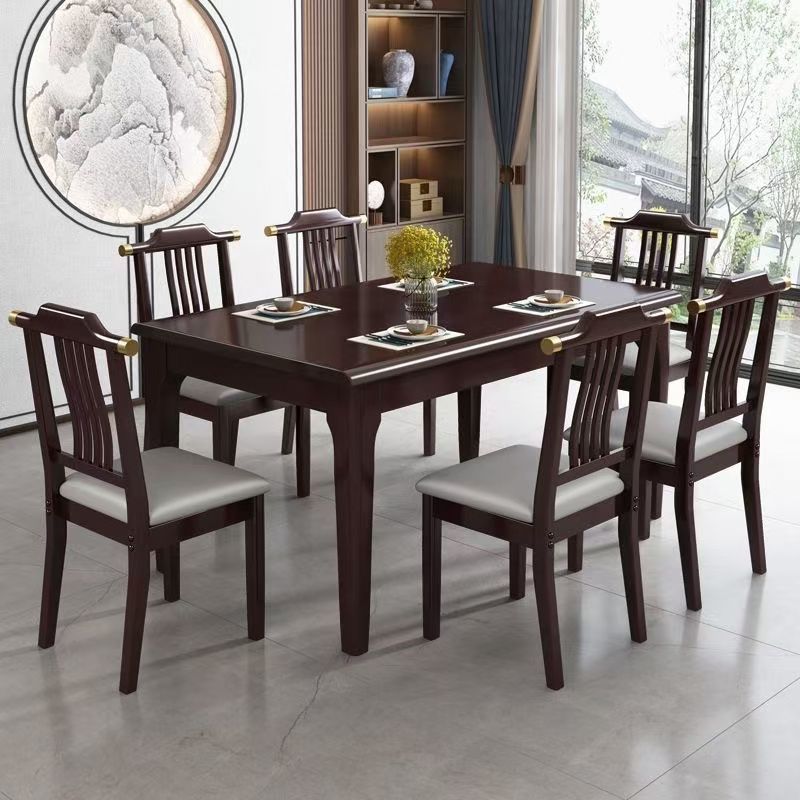 Kombinasi Meja Makan Kayu Murni Gaya Tiongkok Baru Kombinasi Meja Makan Persegi Panjang Hotel Restoran Rumah Tangga Kecil Sederhana Modern