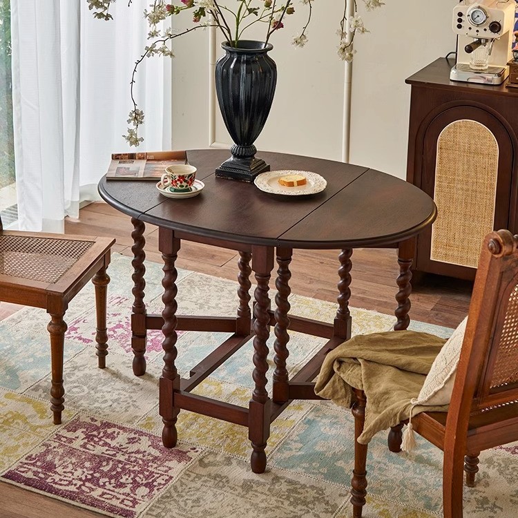 Prancis Retro Kayu Solid Lipat Meja Makan Ruang Tamu Ruang Makan Rumah Tangga Meja Bundar Kopi Oval Vintag Meja Pertengahan