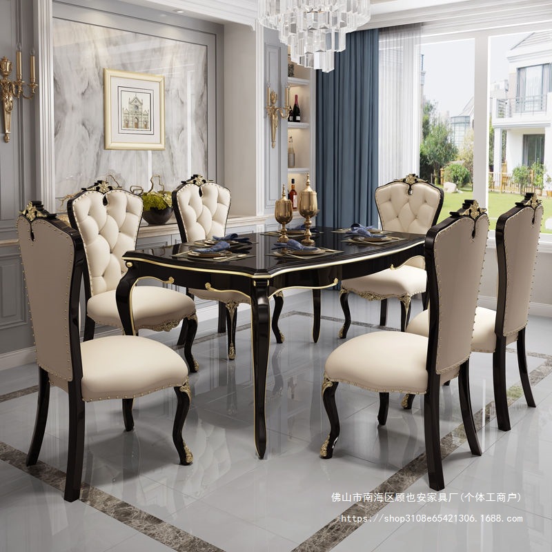 GY Meja Makan Persegi Panjang Gaya Eropa Persegi Panjang Tipe Unit Kecil Kombinasi Meja Makan Kayu Solid Mewah Gaya Amerika