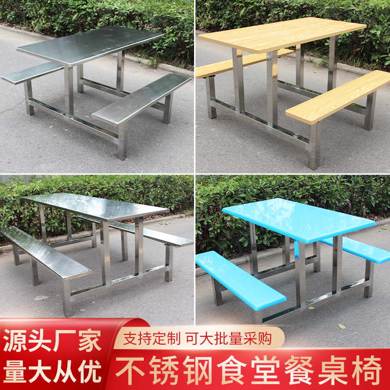 Kantin Sambung Badan Stainless Steel Meja Makan Kursi Sekolah Pabrik Snack Stainless Steel Bangku Makanan Cepat Saji Meja Kursi Dapat Disesuaikan