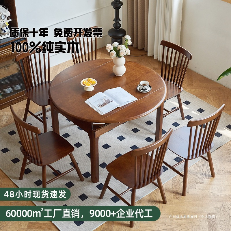 Meja Makan Kayu Solid Gaya Tiongkok Baru Meja Bundar Rumah Tangga Sederhana Rumahan Kecil Meja Makan Restoran Lipat Dapat Diteleskopik 6-12 Orang