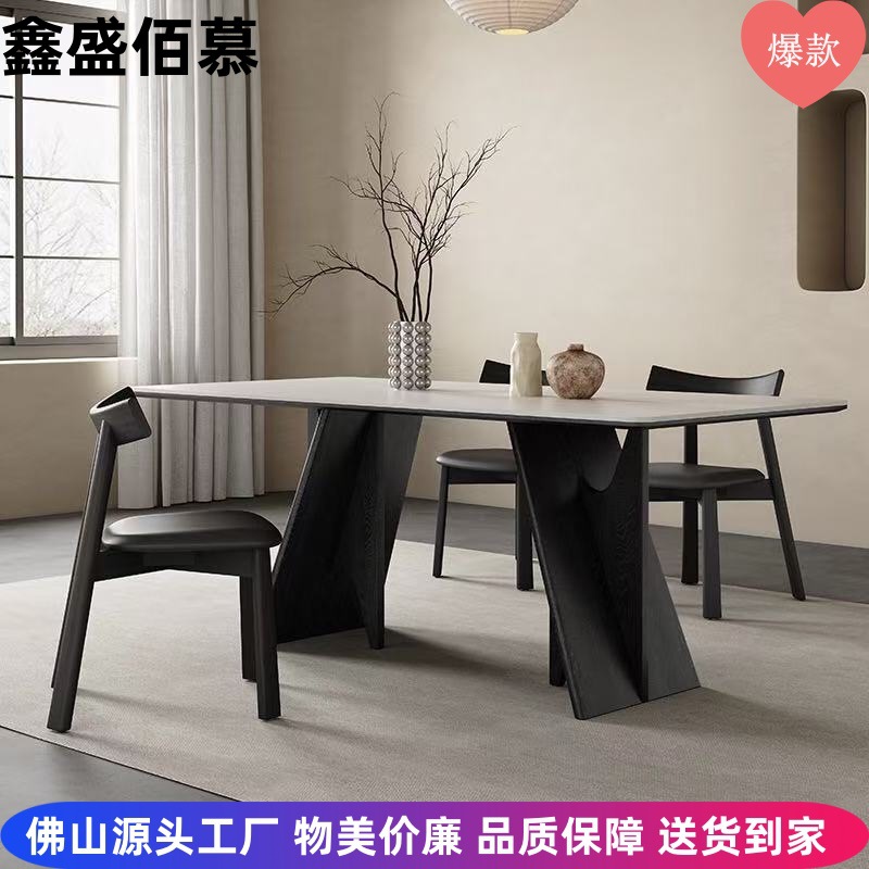 Meja Makan Papan Batu Kayu Solid Warna Hitam Sederhana Rumah Tangga Modern Gaya Italia Ringan Gaya Eropa Utara Kursi Sandaran Restoran Set Meja Makan Kursi