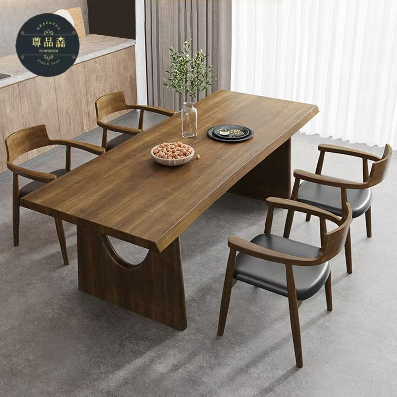 Meja makan kayu solid Whale Island, kayu walnut hitam, meja makan rumah, meja makan sederhana modern, meja kantor kayu alami, furnitur mewah ringan.