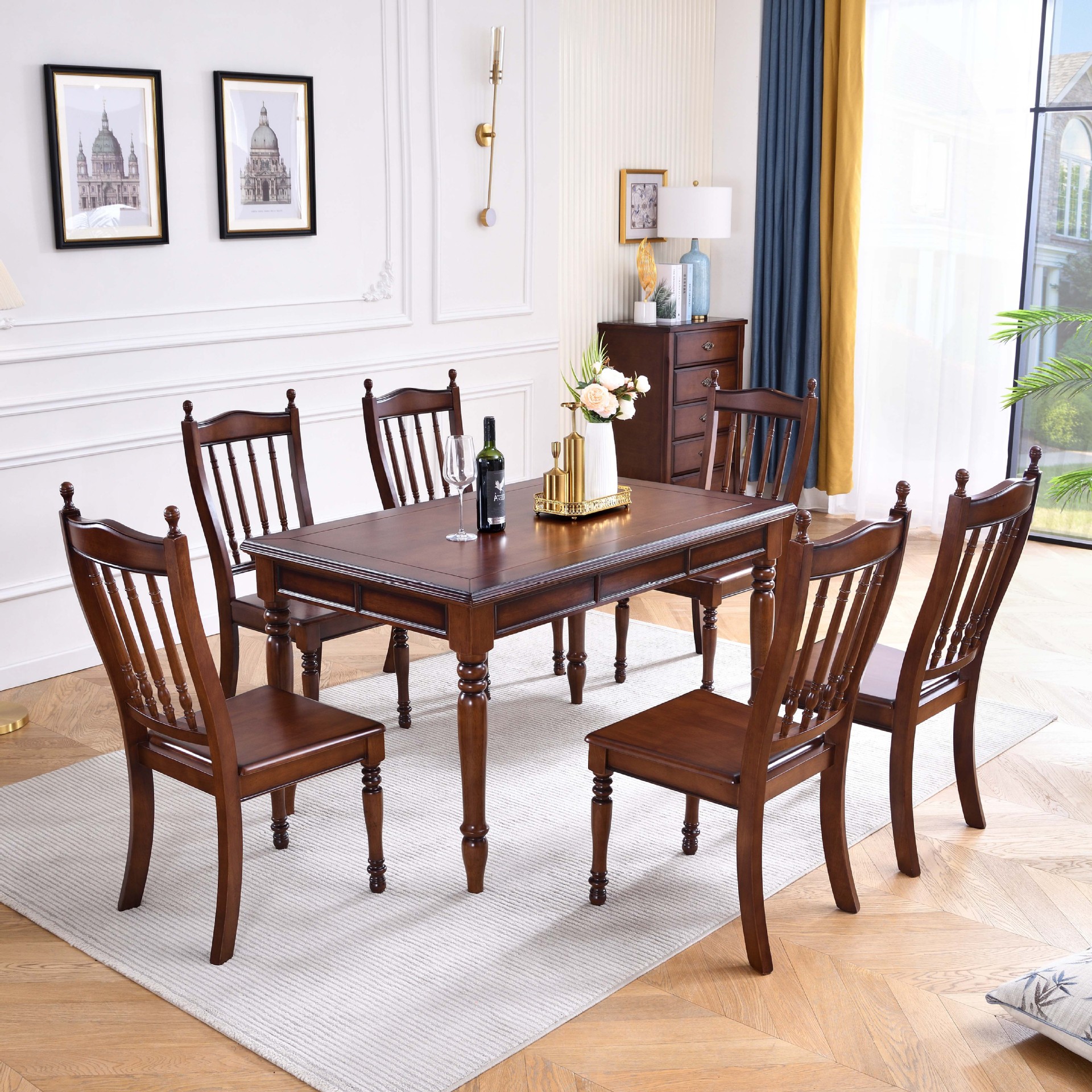 Meja Makan Persegi Panjang Rumah Tangga Restoran Eropa Model Kecil Gaya Eropa Tipe Kamar Makan Kombinasi Meja Makan Kombinasi Kursi Makan Kayu Murni Murni Murni Gaya Amerika