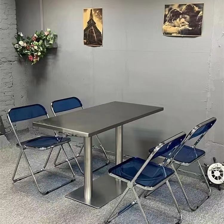 Meja Stainless Steel Snack Bar Teh Susu Gaya Industri Kantin Meja Hotel Kursi Kafe Meja Makan Komersial Restoran