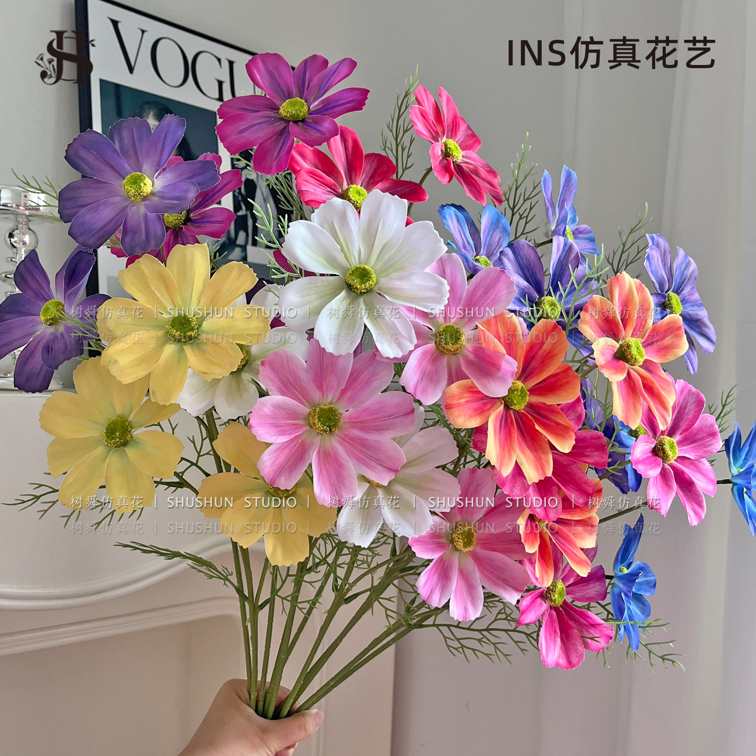 Ins Cosmos Gesang Bunga Imitasi Gaya Korea Dekorasi Rumah Tangga Bunga Sutra Bunga Palsu Meja Teh Seni Bunga