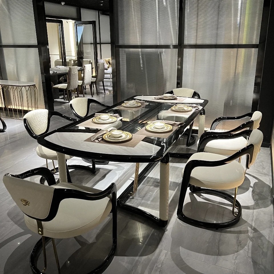 Meja Makan Kayu Solid Mewah Ringan Gaya Italia Meja Makan Persegi Panjang Permukaan Marmer Restoran Kombinasi Lantai Dating Besar Model Sama dengan Es Putih