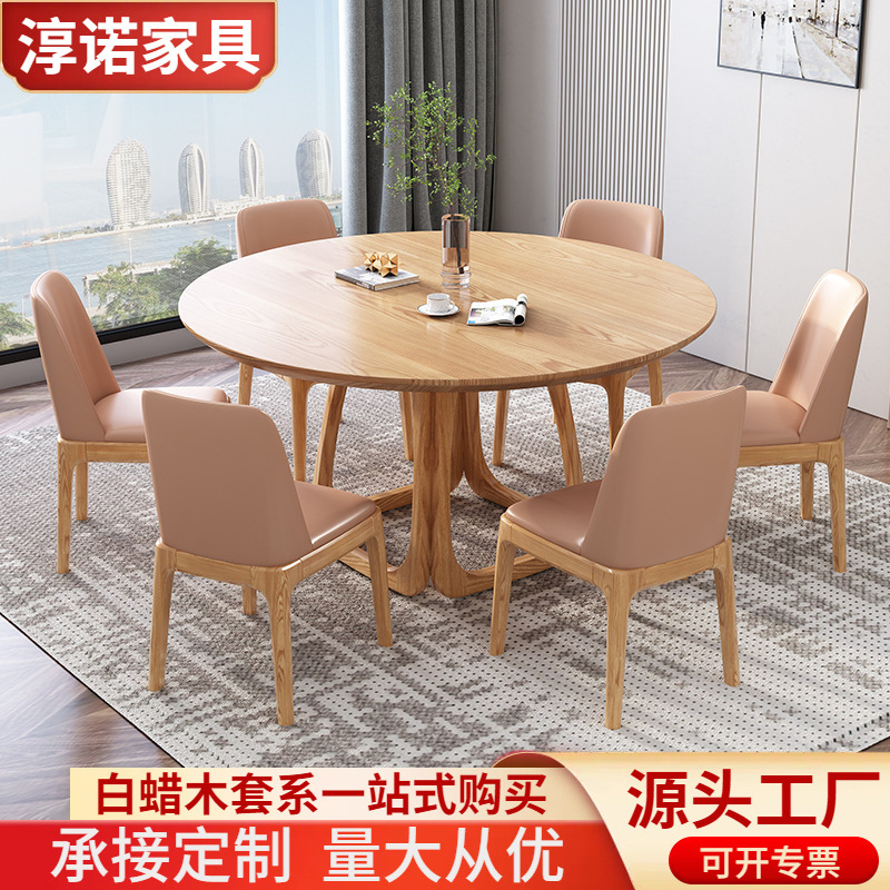 Meja bundar sederhana untuk penggunaan di rumah, furnitur meja bundar besar bergaya retro, set meja dan kursi makan bergaya Cina baru, set meja dan kursi ruang makan.