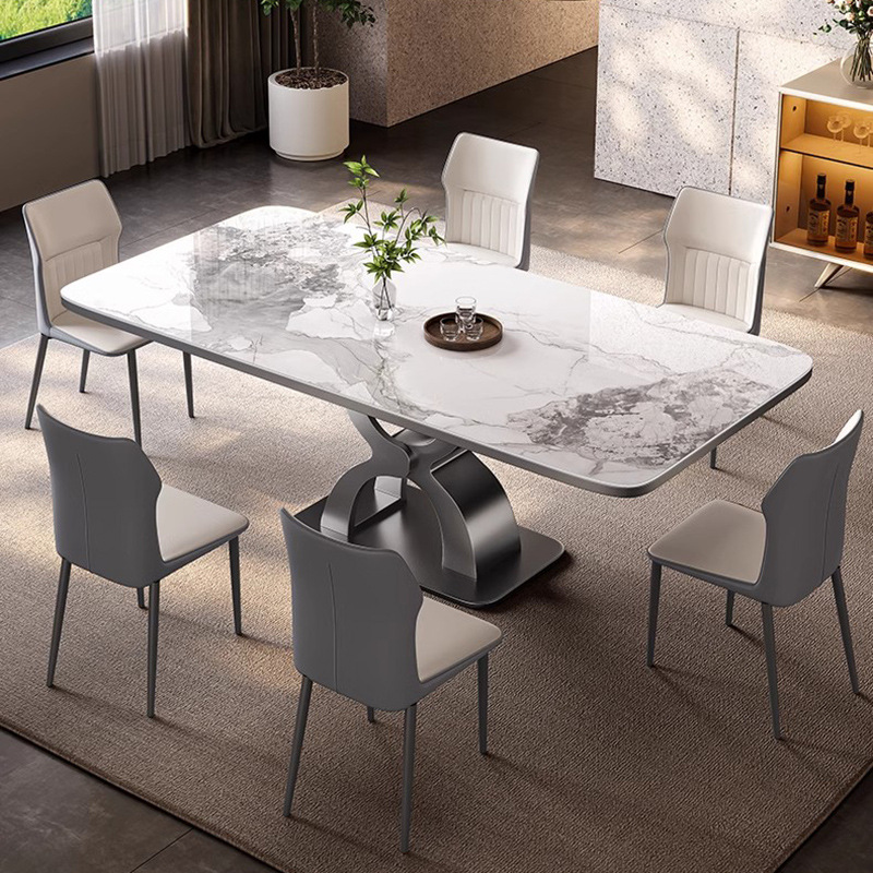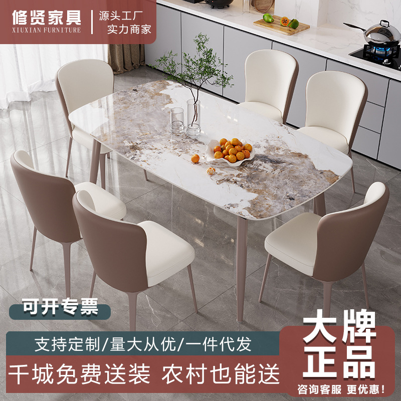 Meja Makan Papan Batu Gaya Italia Modern Sederhana Rumah Tangga Kecil Meja Makan Meja Makan Kombinasi Meja Makan dan Kursi Makan Putih Gunung Salju Mewah Ringan