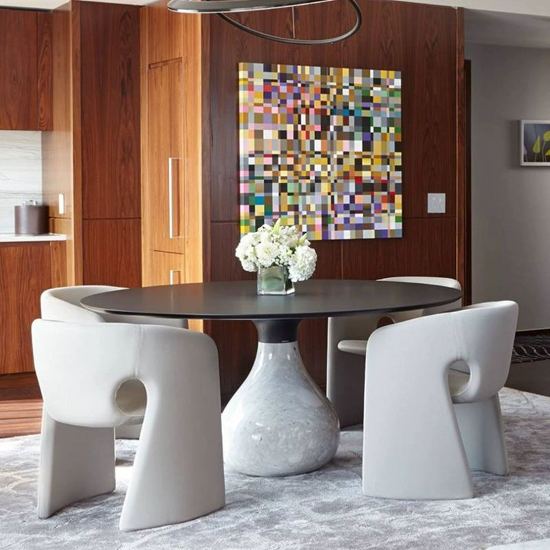 Gaya Italia Meja Makan Batu Mewah Ringan dengan Suasana Kuat Model Desainer Kamar Villa Model Restoran Oval