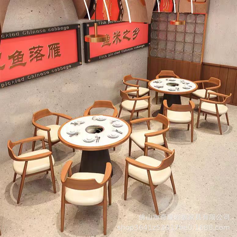 Restoran Hot Pot Hunan Restaurant Meja Kayu Solid Kursi Kursi Kursi Kursi Sofa Restoran Rantai Teh Komersial Sederhana Restoran Barbekyu Barbekyu