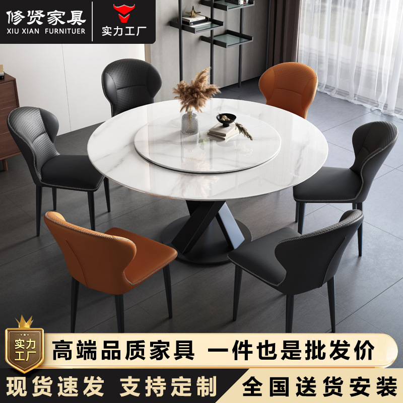 Meja Makan Papan Batu Mewah Ringan Meja Bundar Sederhana Modern Meja Makan Bentuk Bundar Rumah Tangga Kecil Meja Makan Kombinasi Kursi Restoran