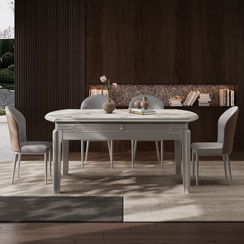 Meja Makan Batu Lok Persegi Panjang Restoran Rumah Tangga Rumah Tangga Model Kecil Sederhana Kombinasi Kursi Meja Makan Papan Batu Batu Kayu Solid Modern