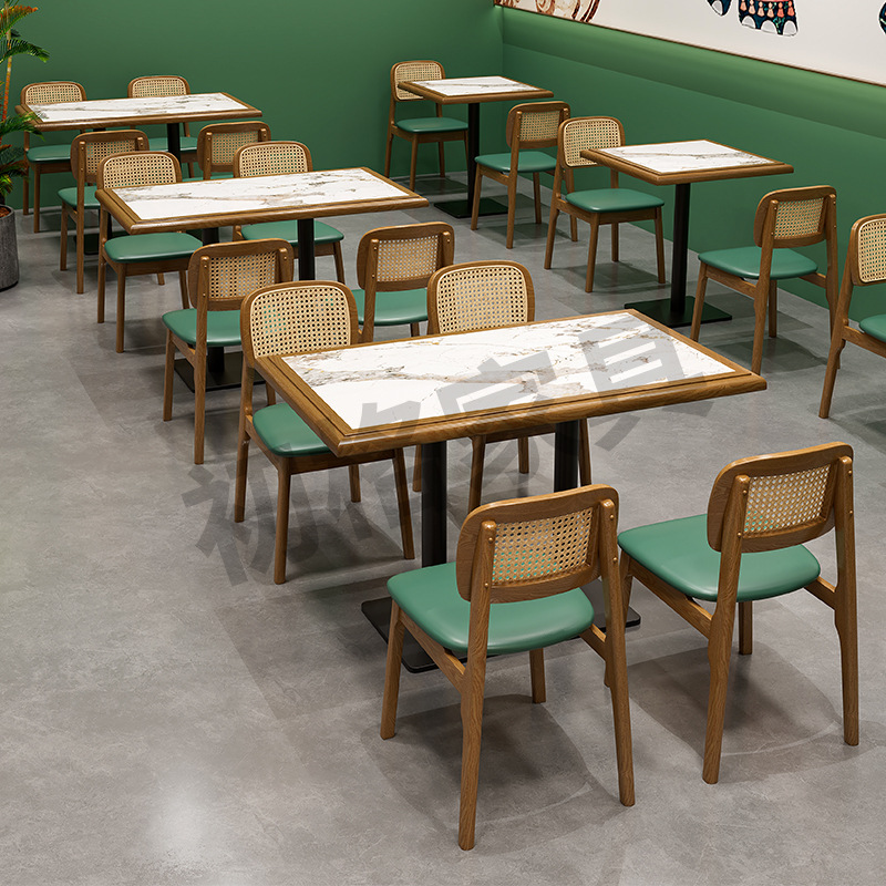 Tema Restoran Kayu Solid Rotan Kursi Kartu Sofa Restoran Barat Kursi Komersial Rumah Teh Hotpot Kombinasi Meja dan Kursi Toko Teh Susu