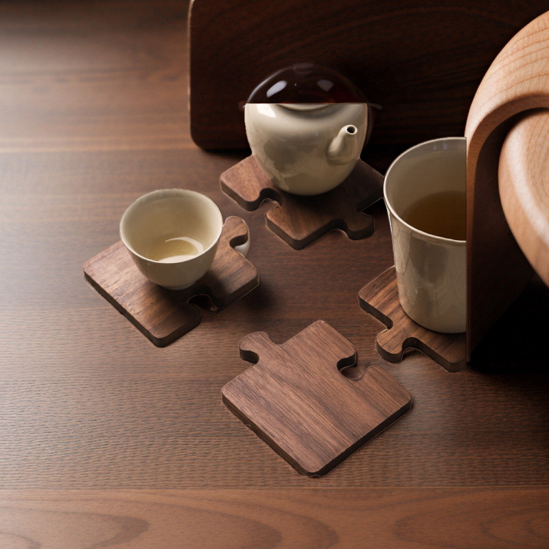 Alas Cangkir Puzzle Kayu Walnut Kreatif Tempat Cangkir Kopi Persegi Alas Isolasi Panas Dekorasi Meja Makan Bar Tempat Teh Kayu Retro