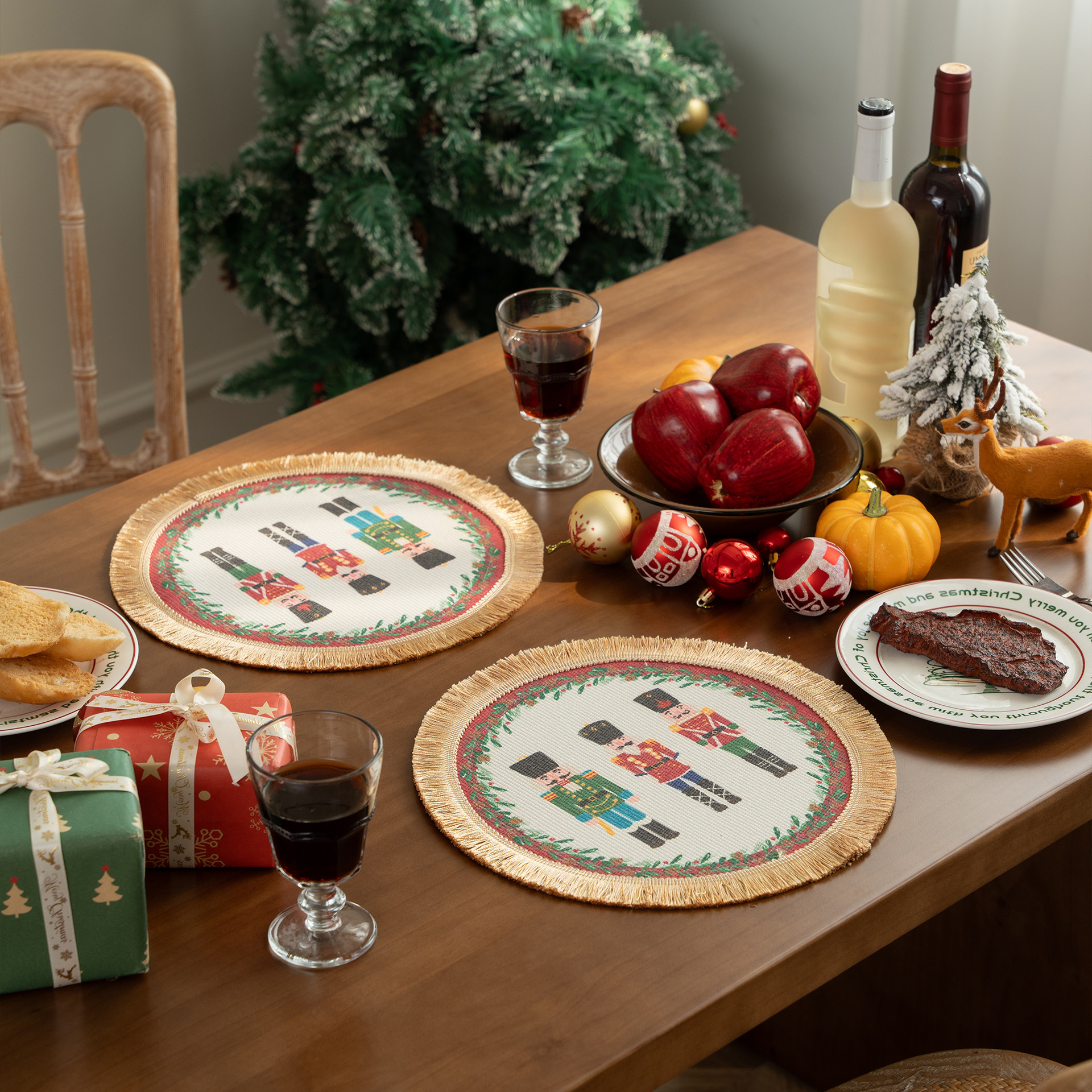 Nutcracker katun benang tenun tatakan bulat gaya Inggris alas meja restoran Barat tatakan kartun tatakan isolasi tikar pot