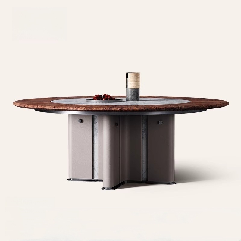Modern Sederhana Listrik Meja Makan Kayu Solid Rumah Restoran Villa Kayu Walnut Mewah Batu Inner Listrik Putar Meja Makan