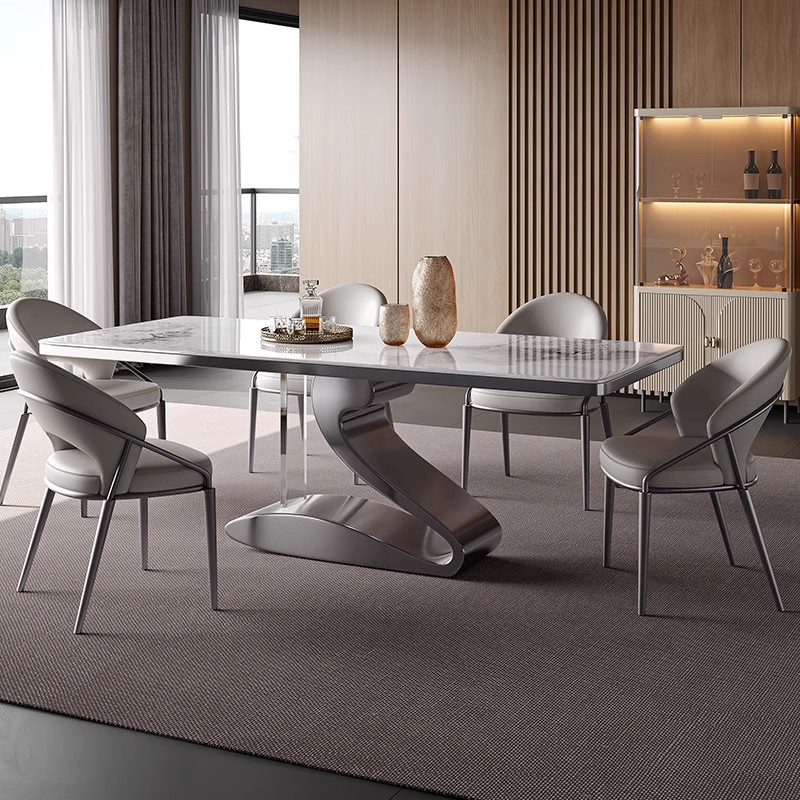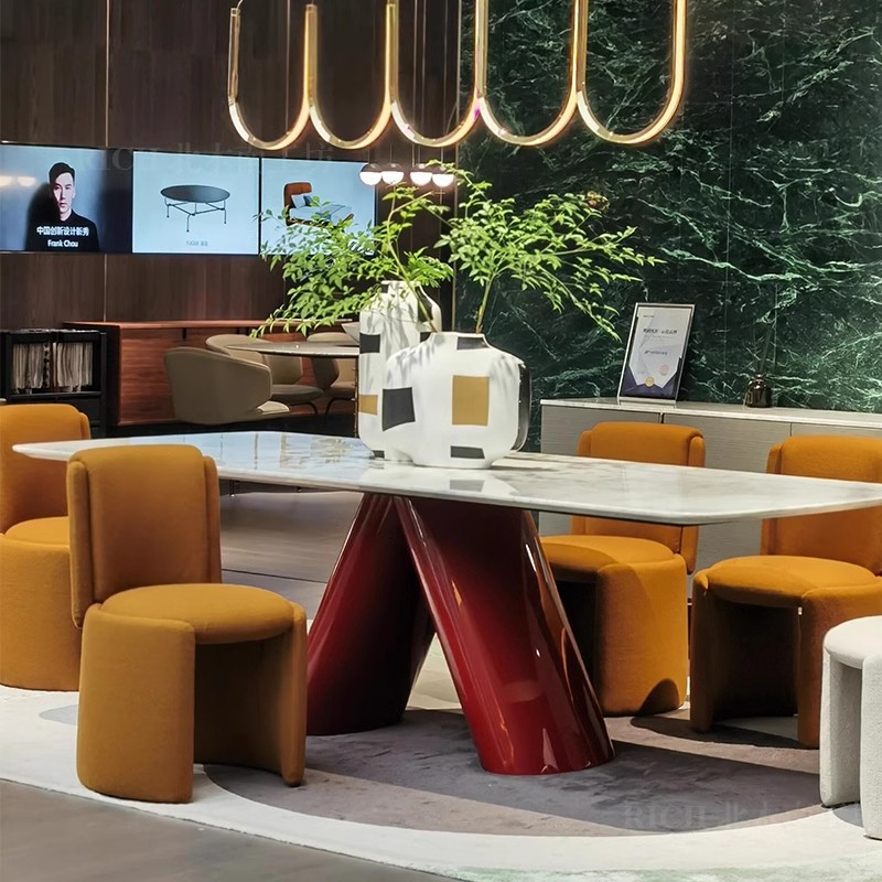 Kari Bingyu Marmer Meja Makan Stainless Steel Merah Pernis Cahaya Tinggi Modern Persegi Panjang Rumah Tangga Meja Makan