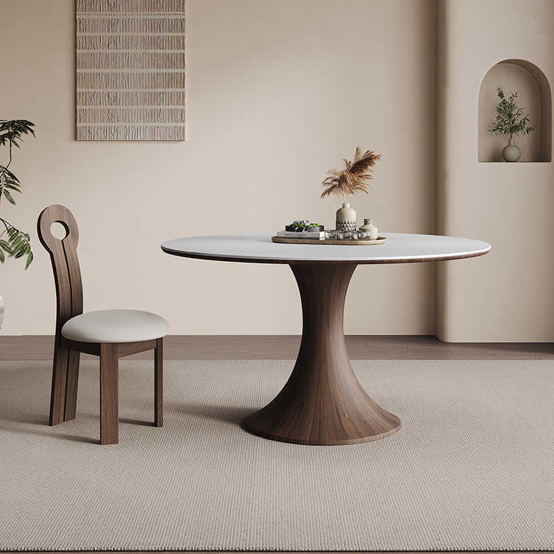 Meja Makan Papan Batu Kayu Solid Gaya Perancis Meja Makan Putih Murni Sederhana Berputar Meja Makan Retro Meja Bundar Restoran