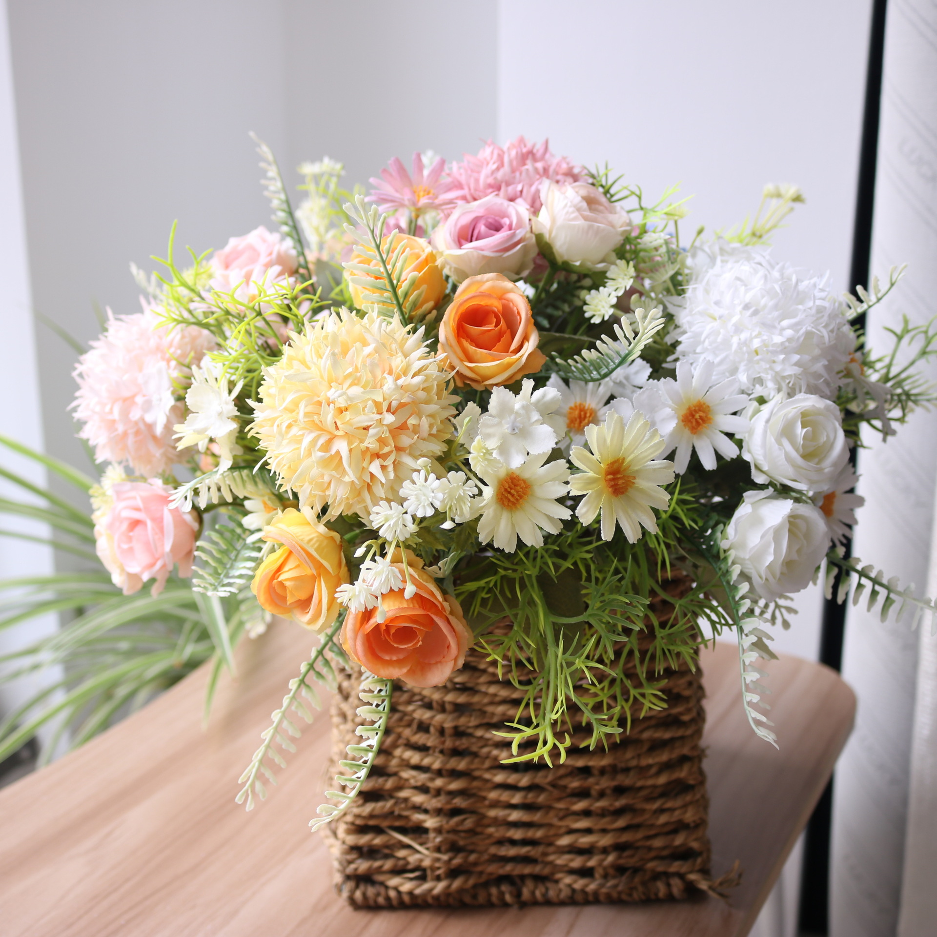 Bunga buatan gaya Eropa chamomile meja makan bunga aster buatan dekorasi rumah bunga krisan liar kecil sutra grosir dan ritel