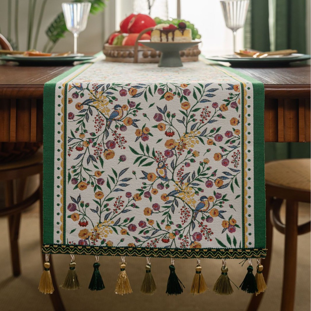 伊缦琪韵中式古典桌旗绿色提花长条餐桌布茶几电视柜氛围装饰盖布