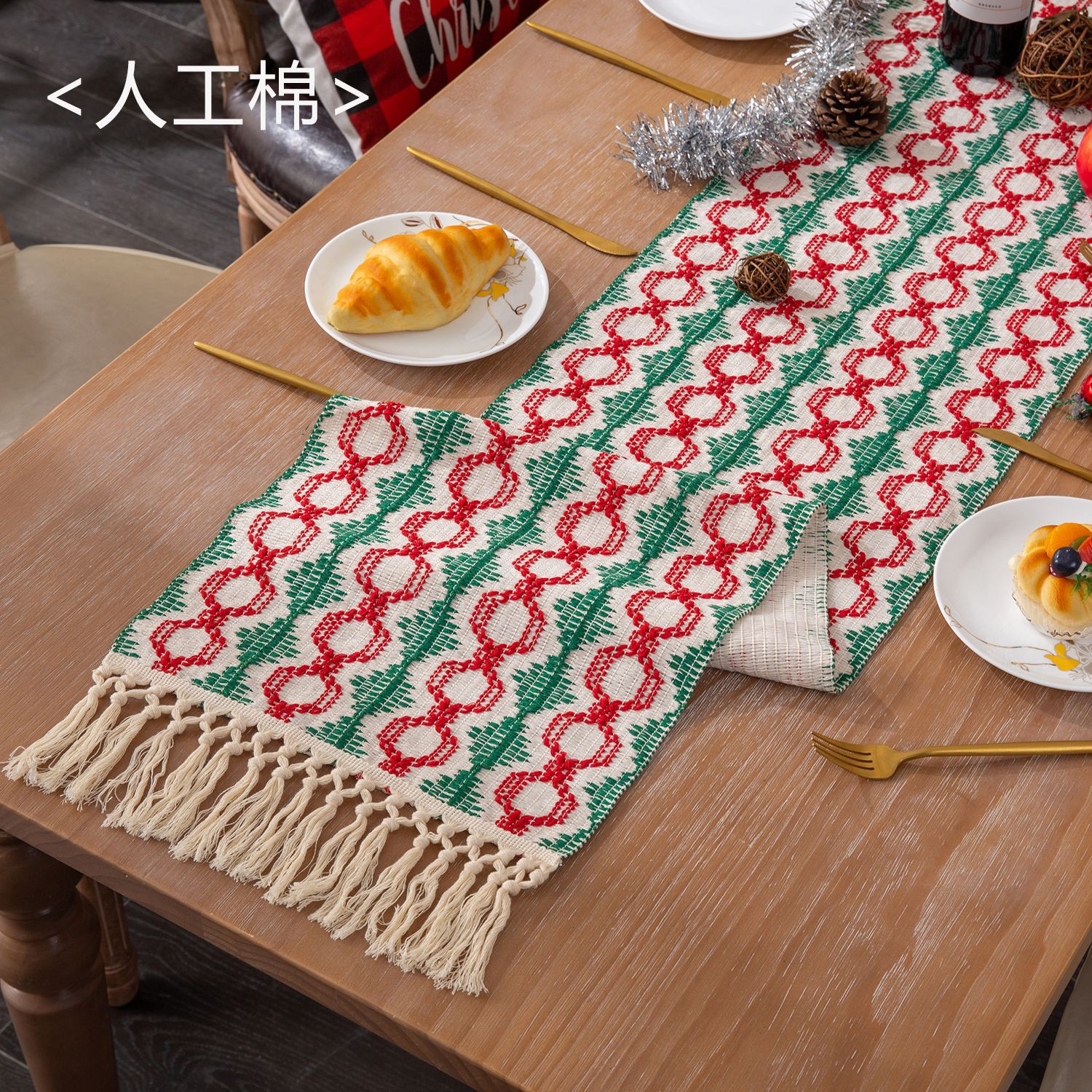 Taplak meja Natal baru rajutan katun dua warna dekorasi liburan rumbai panjang taplak meja rumah Amazon