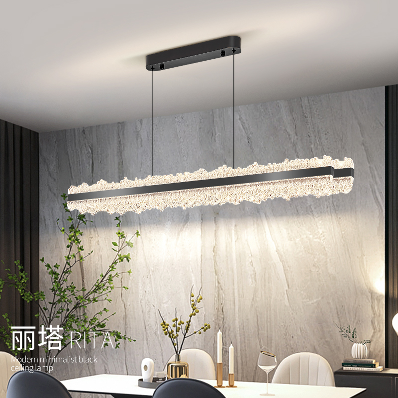 极简餐厅吊灯意式轻奢创意设计师款冰裂纹一字长条led岛台吧台灯