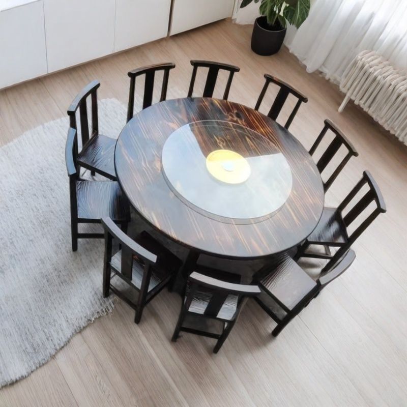Meja Hot Pot Retro Meja Meja Bundar Meja Makan Rumah Pertanian Kayu Solid Meja Restoran Meja Meja Meja Makan Meja Meja Berputar Hotel Gaya Tiongkok Kombinasi Meja Makan dan Kursi